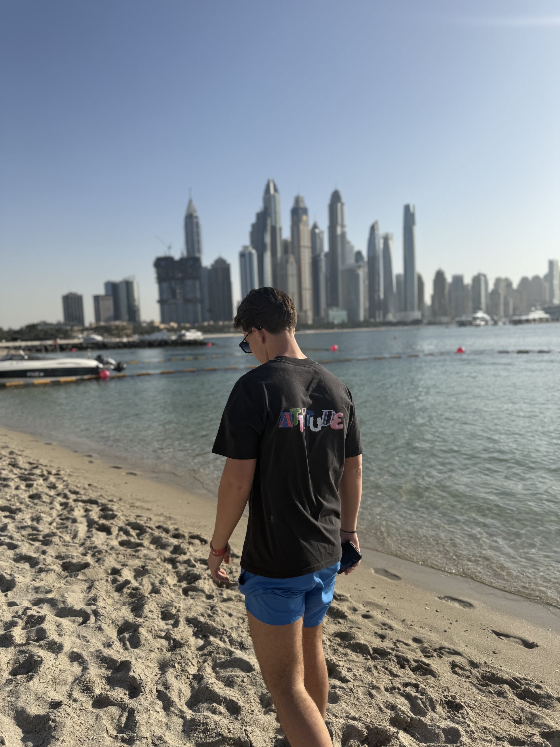 Het model op de foto draagt maat M, weegt 80 kilo en is 1,88 meter lang.